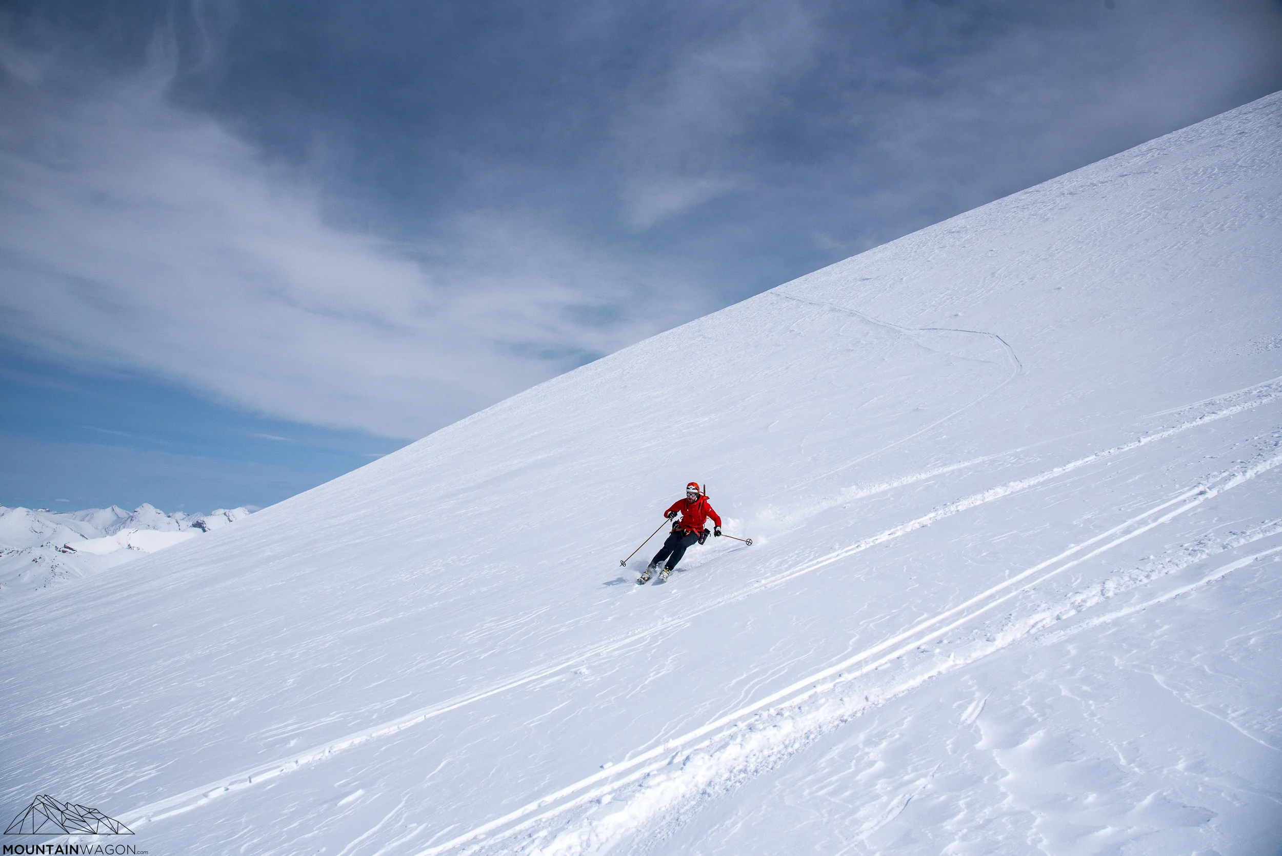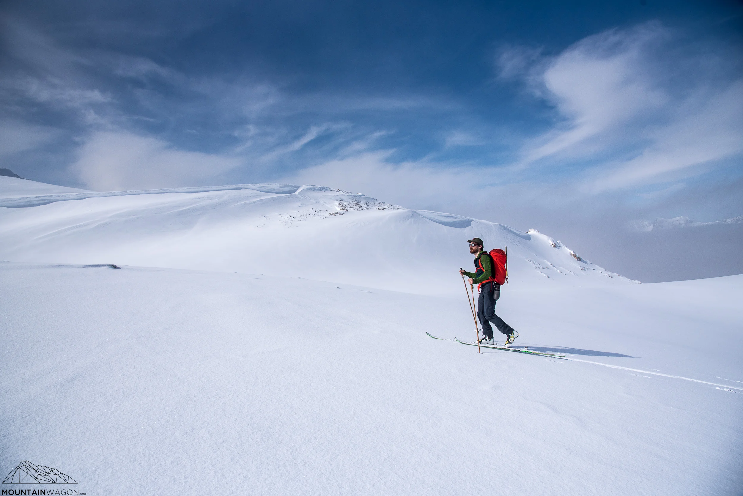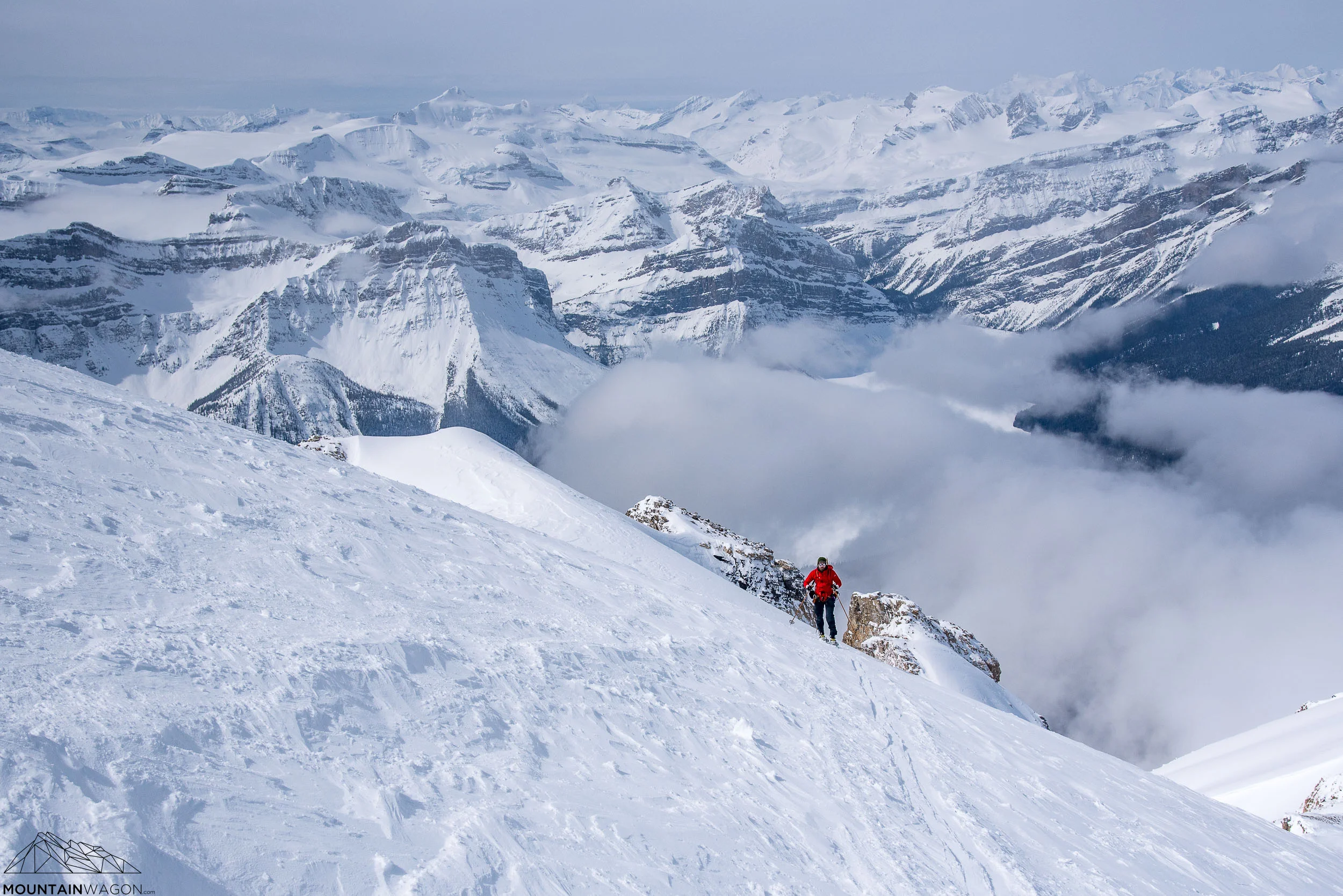 Skyler cruising up the last of the Mount Hector headwall - already well above the surrounding peaks.