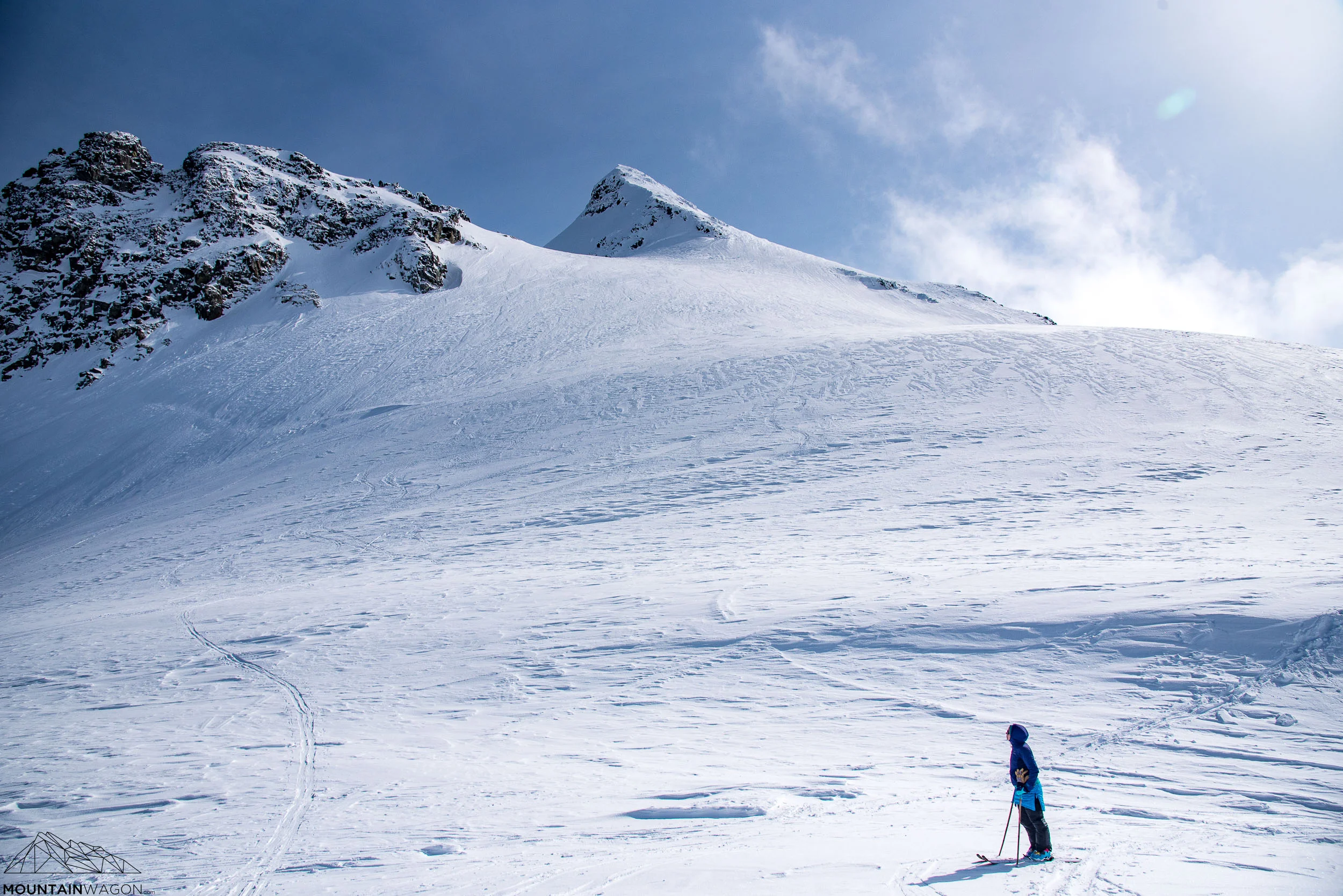 The plan was to tour up to a common campsite named Motel 66, It's a flat spot at about 1975m elevation. It's sheltered from most hazards and a great place to pitch a tent if you're looking for a shorter summit push and a more restful night than you might get at the busy hut.